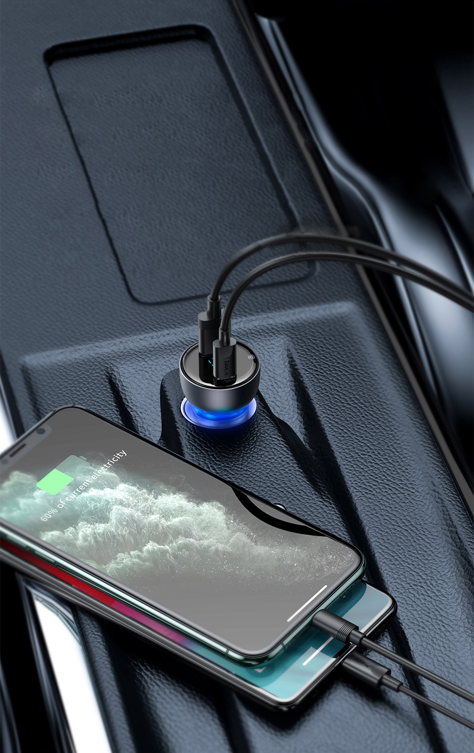 Devices with an older interface charge approximately 20% of the battery in 30 minutes, while a Baseus device can charge up to 60% of the battery at the same time. This allows you to use applications such as navigation and noticeably charge your phone at the same time.