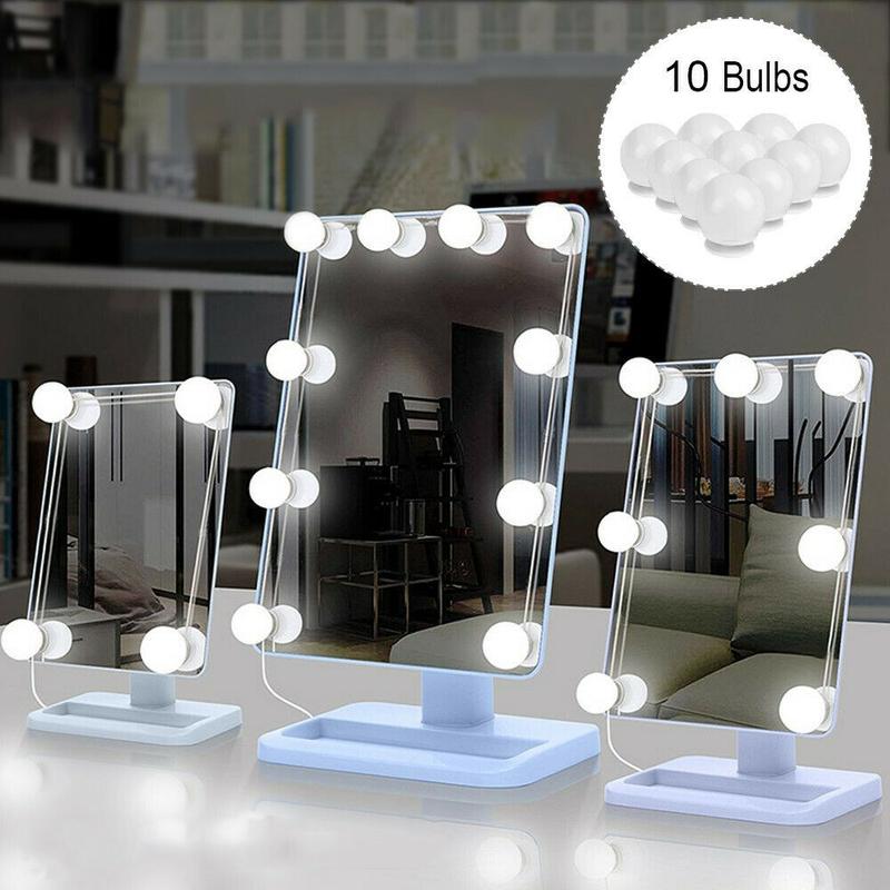 Transform your everyday makeup routine into a professional, studio-like experience with this 10-LED Hollywood Mirror Light Bulb Kit. Designed for quick setup on mirrors, dressers, or other glass surfaces, these dimmable LED bulbs give you the perfect illumination for flawless makeup application and hairstyling. The modern yet elegant design elevates any bedroom or salon décor, ensuring bright, soft lighting for enhanced visibility.