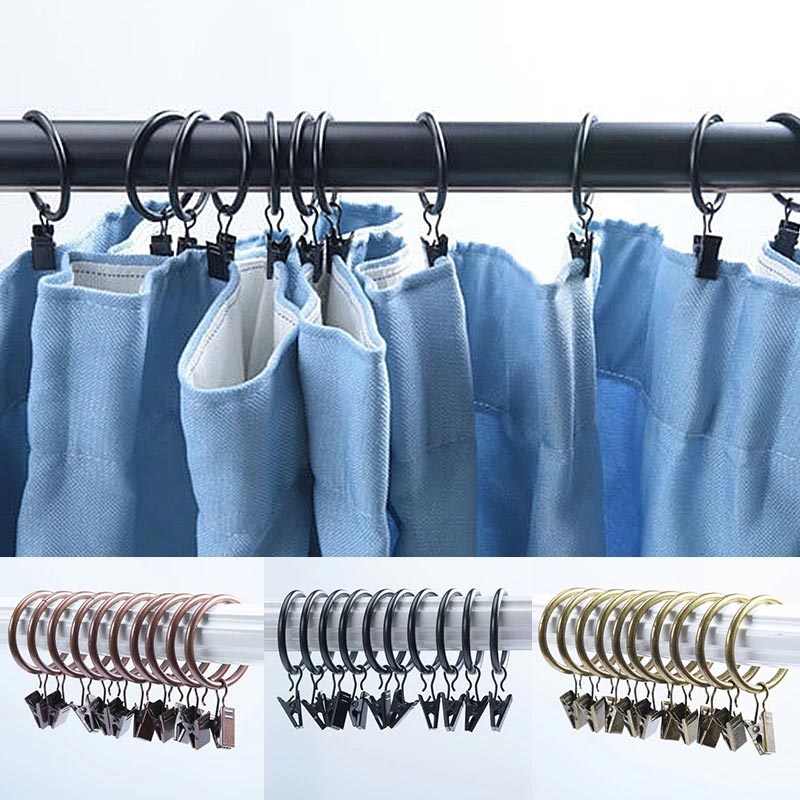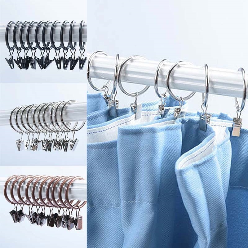 10-Piece Heavy-Duty Shower-Curtain Rings with Clips - Rust-Resistant Iron Hooks, 25 mm