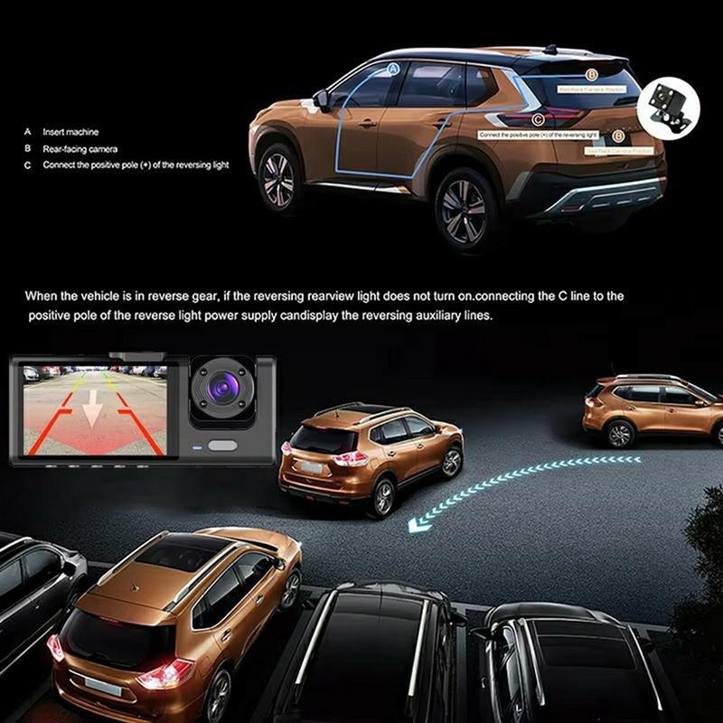 Record every angle of your drive with this 1080p WiFi triple-lens dash camera system. Designed for complete vehicle coverage, it simultaneously captures the front road view, the interior cabin, and the rear surroundings. The wide-angle lens helps capture a larger field of view, making it useful for documenting traffic conditions, road incidents, and in-cabin activity during trips or ride-sharing.