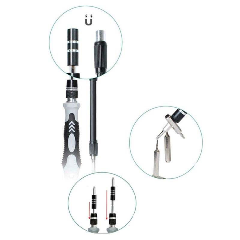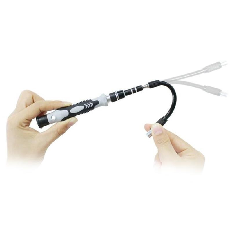 Savršen komplet za popravku kod kuće, ali i u profesionalnom servisu. Napravljen je od hrom-vanadijumskog čelika i sadrži sve što Vam je potrebno: magnetni šrafciger sa 98 različitih nastavaka, antistatičku pincetu, fleskibilne i tvrde produžne cevi, i još mnogo toga. Plastična kutija dizajnirana je tako da lako možete klasifikovati, razvrstati i skladištiti svoj alat.
