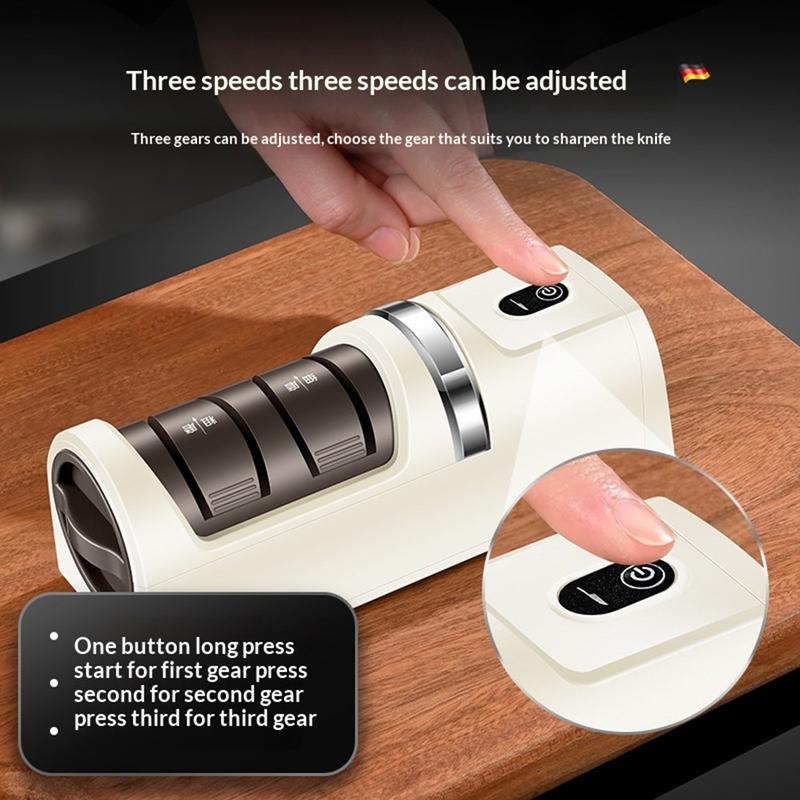 12W Cordless Electric Knife Sharpener with 3 Speed Settings and Diamond Grinding Wheel for Chef Knives