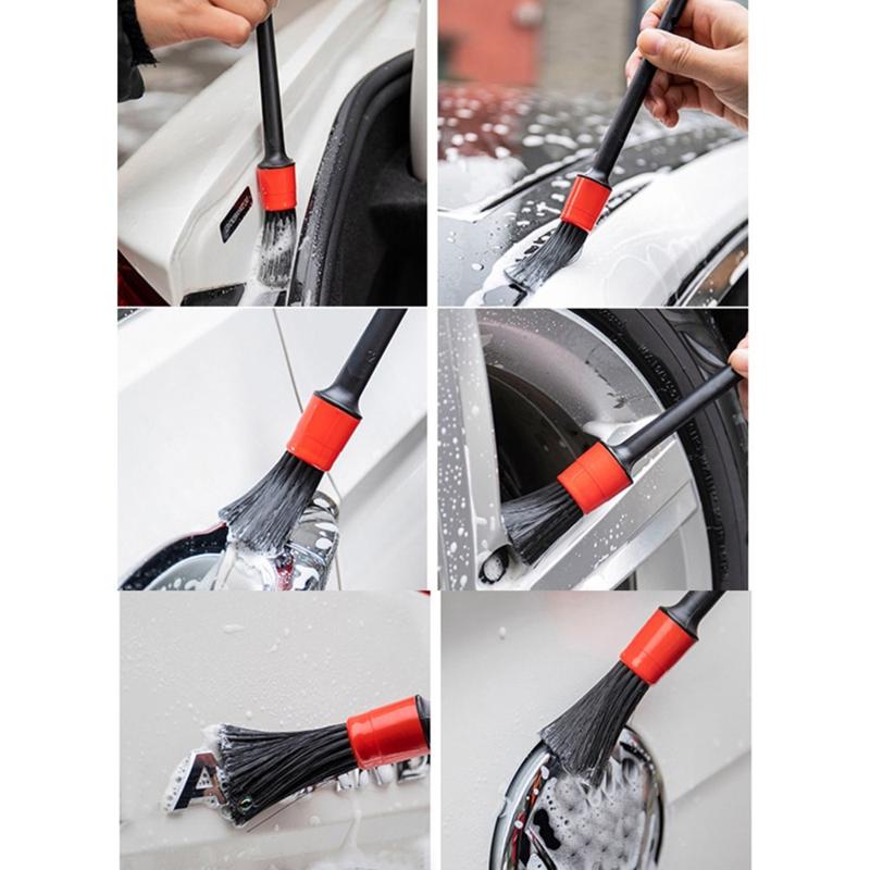 Naše četke imaju 5 različitih veličina, koje mogu zadovoljiti skoro sve vaše potrebe. Manja četkica za detalje može ući u sve male pukotine, uglove, navrtke ili uske prostore. Veća četka za detalje se može koristiti za čišćenje spoljašnjih i širih oblasti kao što su točkovi, ventilacioni otvori, sedišta automobila i instrument tabla