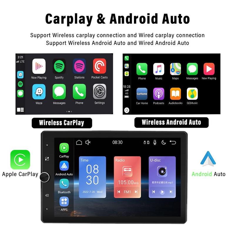 Wireless and Wired CarPlay: The CarPlay system tightly integrates an iOS device with the car's dashboard system. Users can connect via a wired connection to the car system to enable voice-controlled navigation, make phone calls, send and receive messages, and listen to music. Compatible with Apple devices