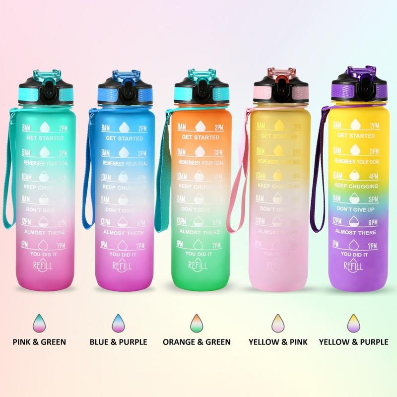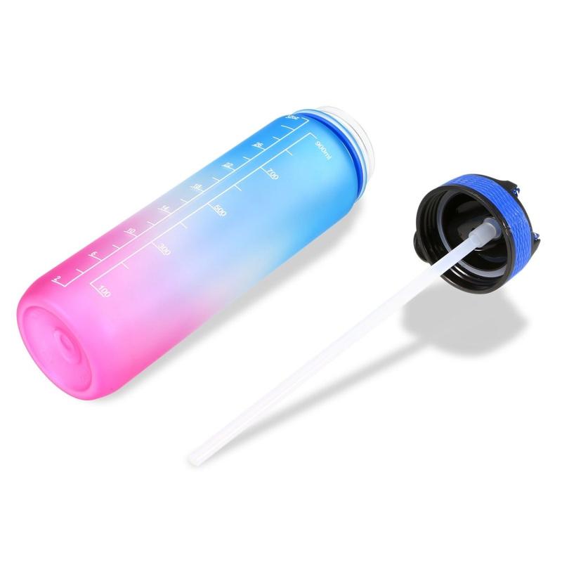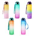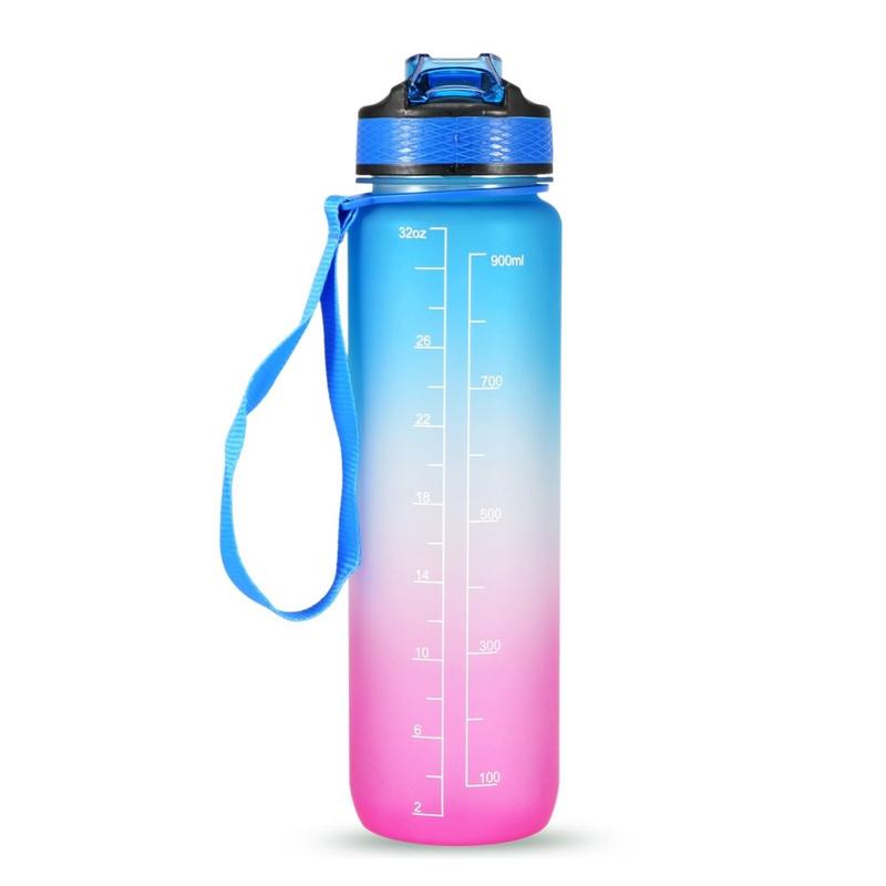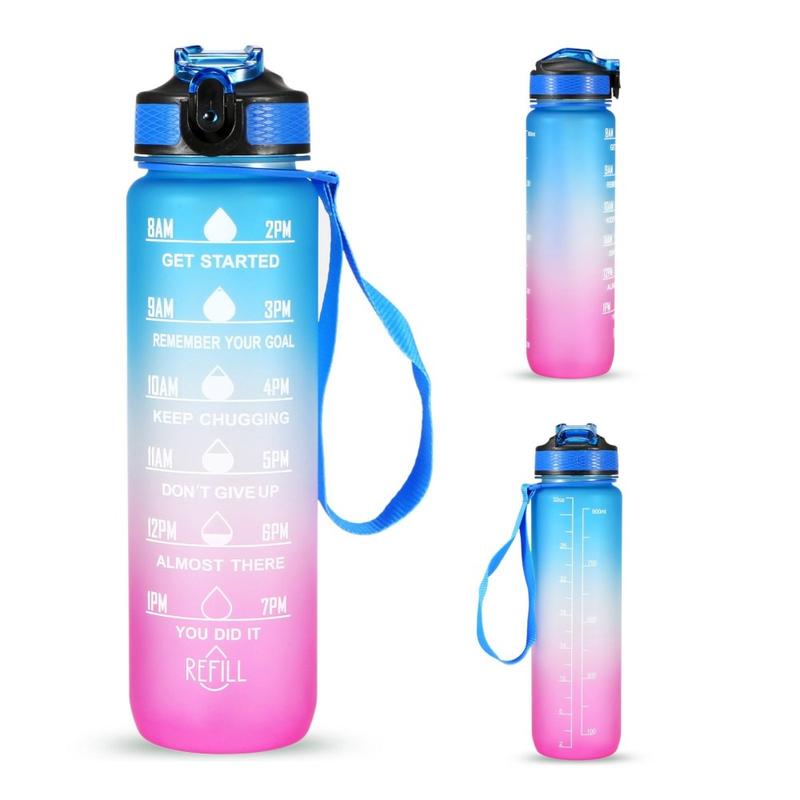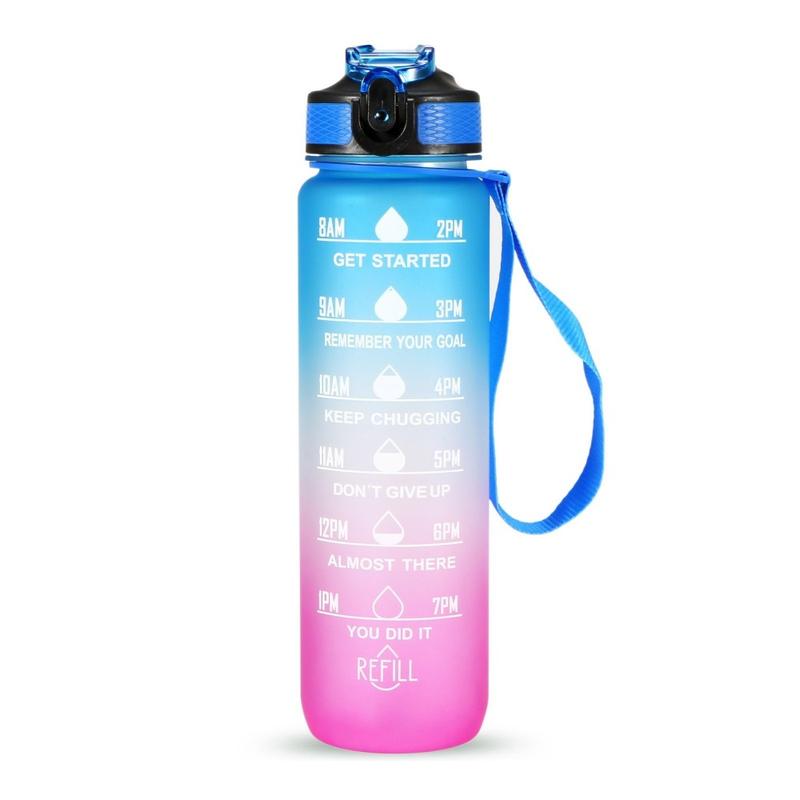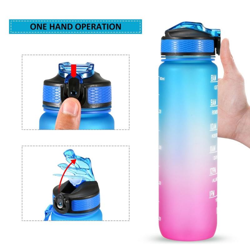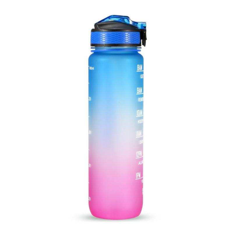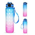 1L Sports Water Bottle with Time Marker Water Jug Leak proof Drinking Kettle for Office School Camping (BPA Free) - Blue/Purple