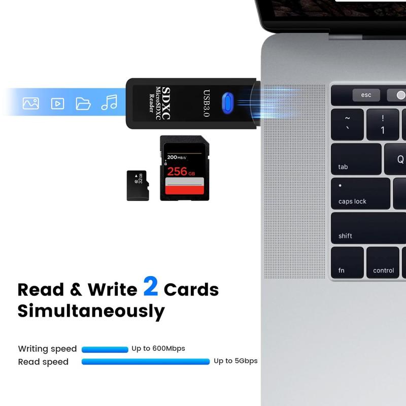 2-in-1 USB 3.0 Card Reader for SD and TF Cards - 5Gbps Dual Slot Memory Card Adapter