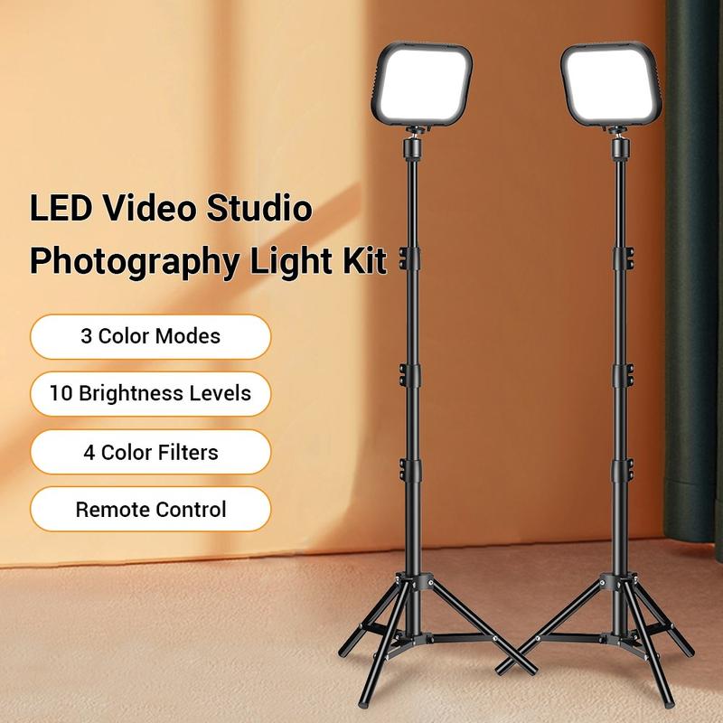 2 LED Lights on Adjustable Tripod and 4 Color Filters for Photo and Video