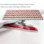 - Neutral white fabric with red scrubbing stripes shows when it is time to rinse, ensuring every room gets a hygienic pad