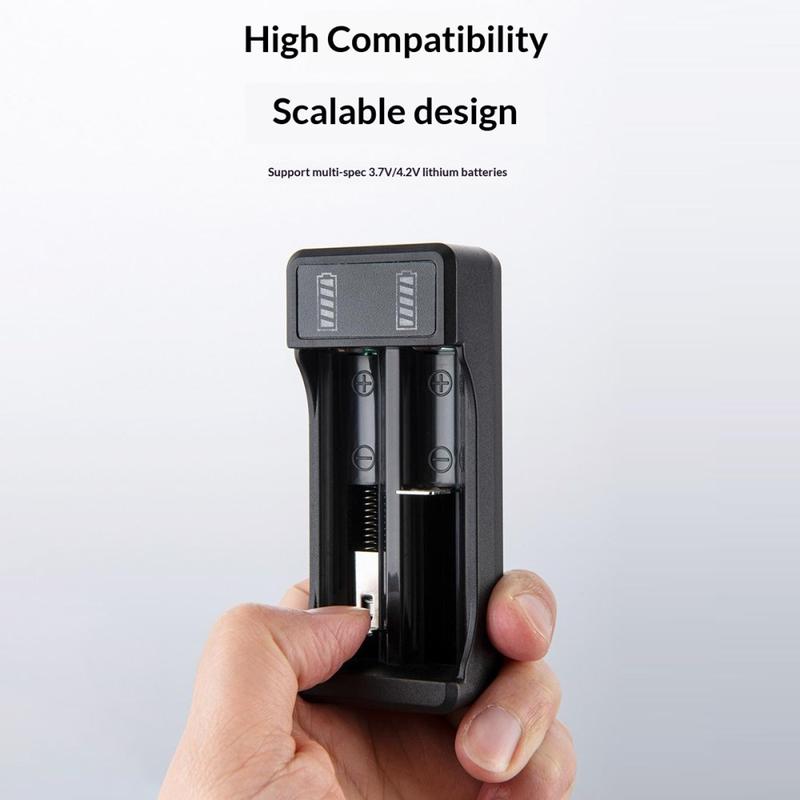 - Adjustable slot size compatible with various 3.7 V / 4.2 V Li-ion batteries