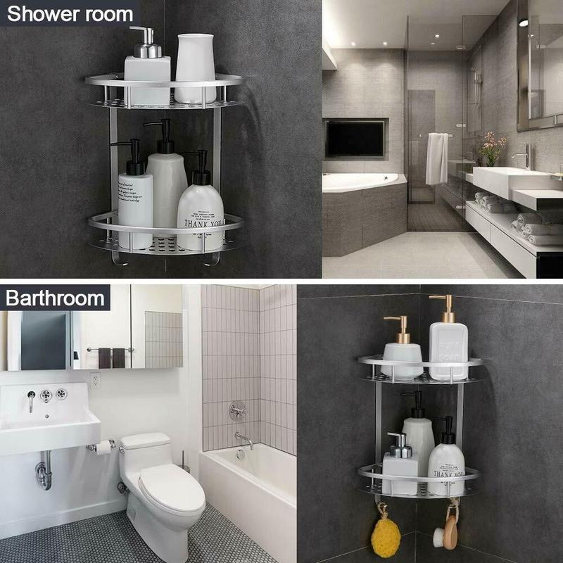 - 2-Tier Triangular Design – Maximizes vertical corner space, offering ample room for shampoos, soaps, razors, and more without clutter.