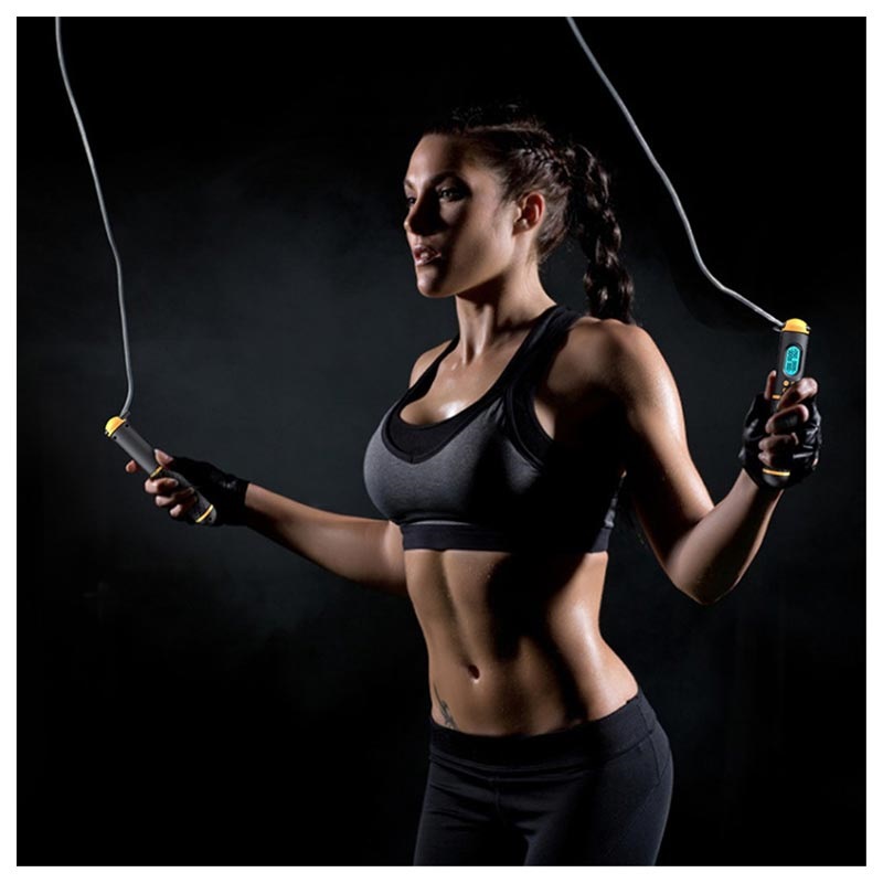 2-u-1 pametni konopac za preskakanje ima digitalni brojač i LCD displej na kojem u realnom vremenu možete pratiti svoje rezultate. Zahvaljujući integrisanom fitnes meraču, registruje broj skokova, sagorele kalorije, kao i vreme vežbanja. Pre prve upotrebe, morate uneti svoju telesnu težinu. Ako više volite klasično preskakanje konopca, samo podesite dužinu konopca i počnite da skačete.