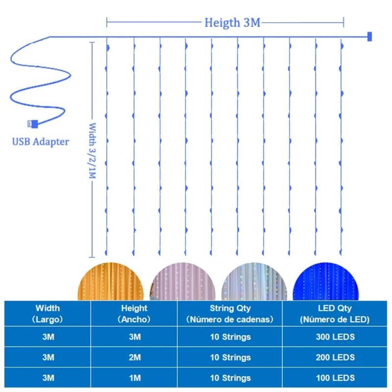 Create a magical atmosphere with the 3m x 2m 200-LED Fairy String Lights, designed for Christmas, weddings, parties, home decor, and more. With 8 adjustable lighting modes, a convenient remote control, and energy-efficient USB power, these curtain lights bring warmth, elegance, and versatility to any space.