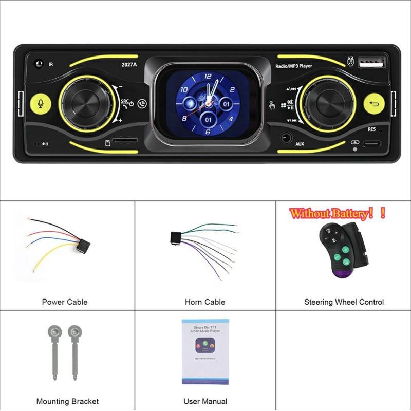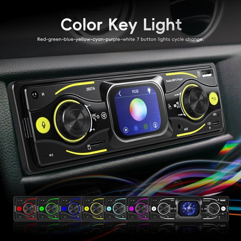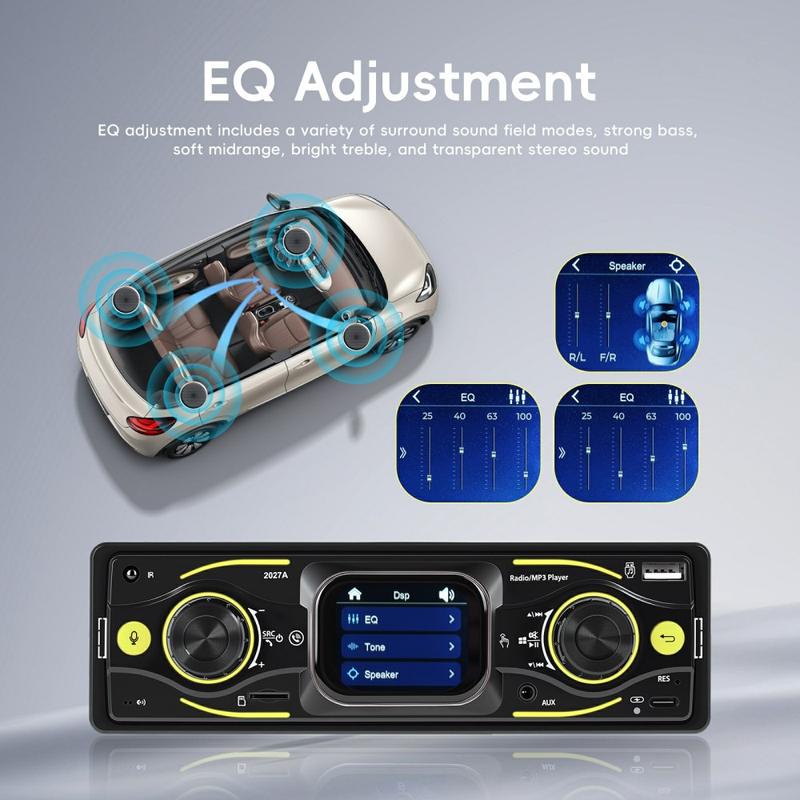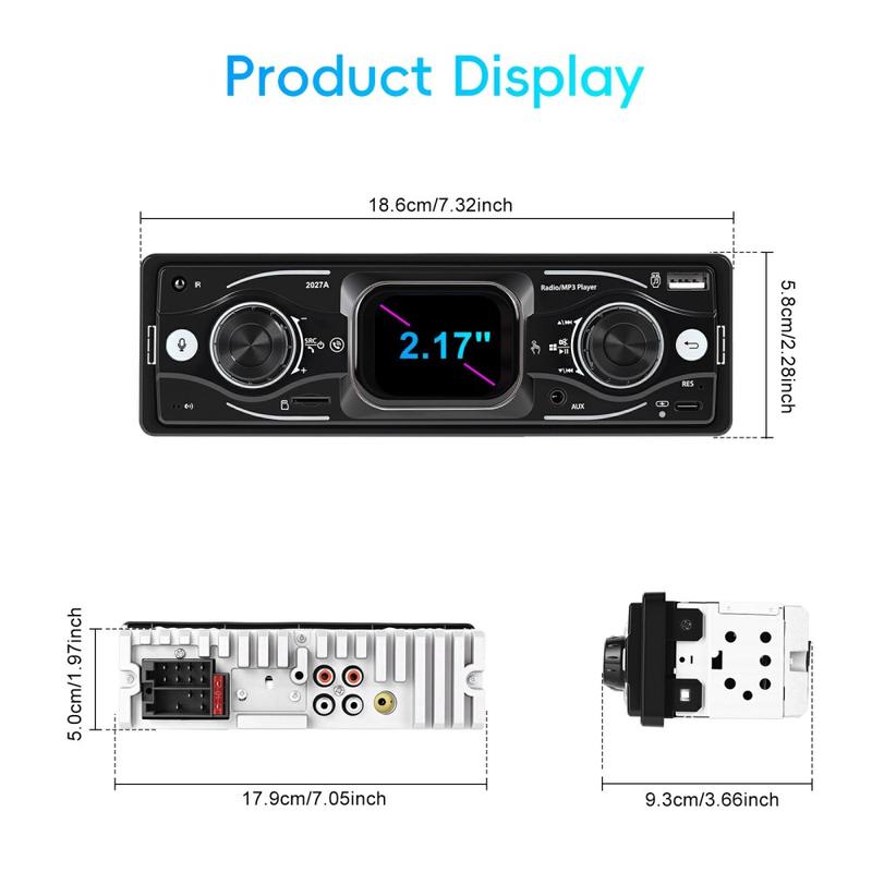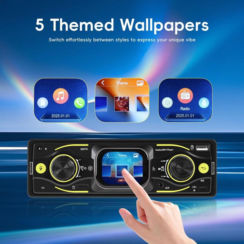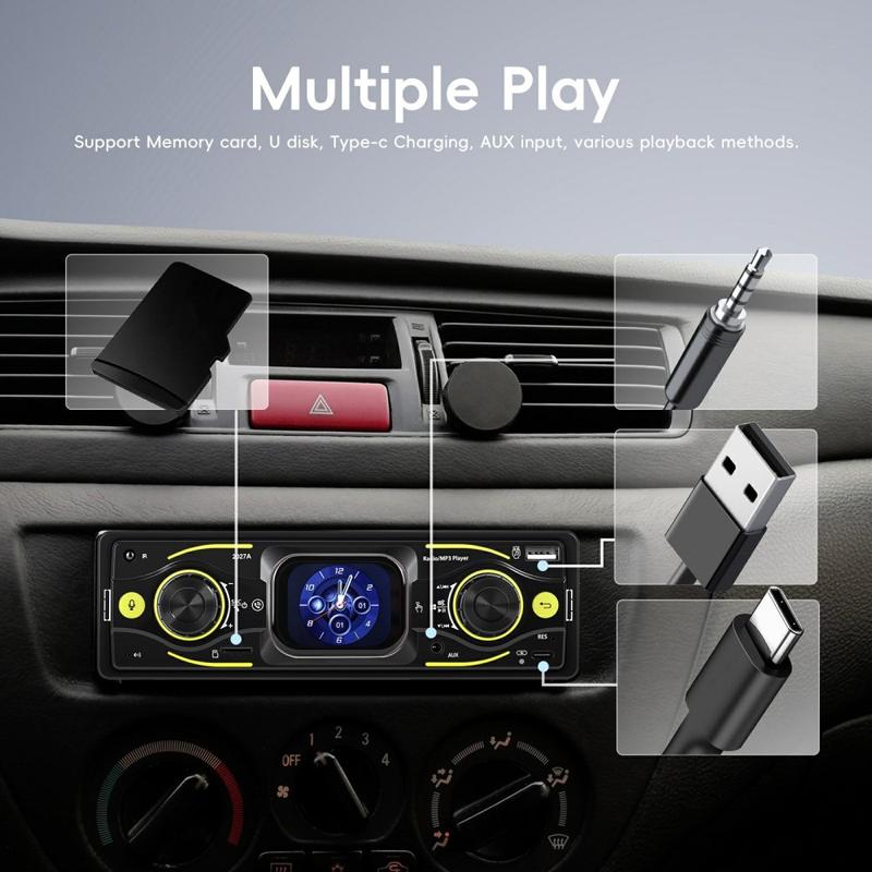 Upgrade your daily drive with the 2027A Single DIN car stereo multimedia player—built for easy control, better sound, and modern connectivity. The 2.17" TFT touch screen works together with physical knobs, so you can adjust music and settings quickly while staying focused on the road. Stream audio wirelessly via Bluetooth-compatible 5.0, take hands-free calls, and enjoy flexible inputs like USB-C, USB, TF card, and AUX for a setup that fits any trip.