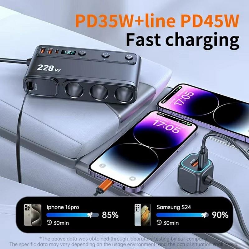 Instead of juggling multiple chargers or running out of outlets, the 228 W 9-in-1 car charger gives you an all-in-one power solution. It combines speed, control, and safety—helping you stay connected and powered up no matter where your journey takes you.