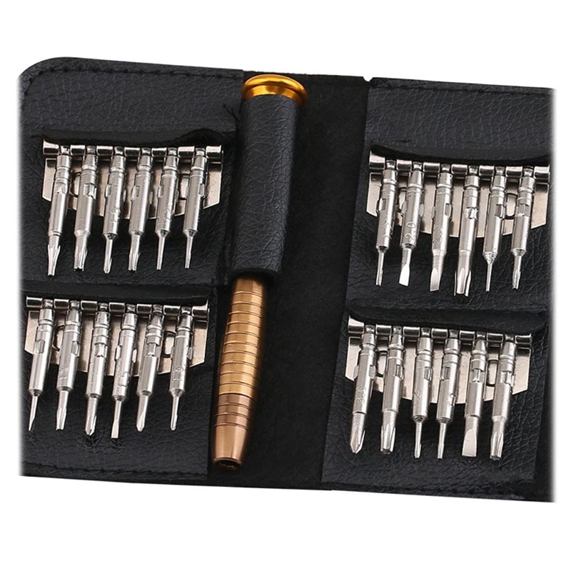 Fantastičan 25-u-1 multifunkcionalni komplet odvijača i alatki za otvaranje biće Vam od velike pomoći pri rastavljanju i sastavljanju kućnih aparata i elektronskih uređaja. Sadrži dvadeset četiri glave šrafcigera tako da ima široku primenu. Komplet je dizajniran u stilu novčanika, veoma je lagan i praktičan za nošenje.