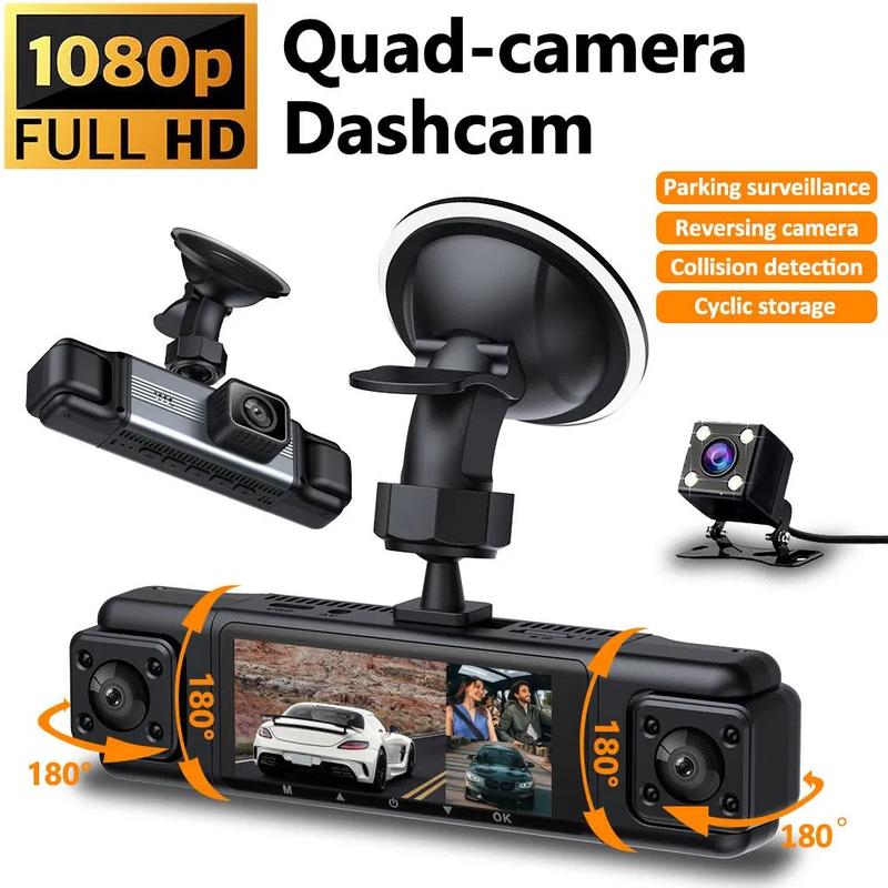 Stay safe and fully protected on the road with this 3.0" IPS Screen 4-lens dash cam, designed to record your journey with exceptional clarity. Featuring a 1080P front camera and three additional 480P side and rear lenses, it provides complete all-round coverage for a safer and more confident driving experience.