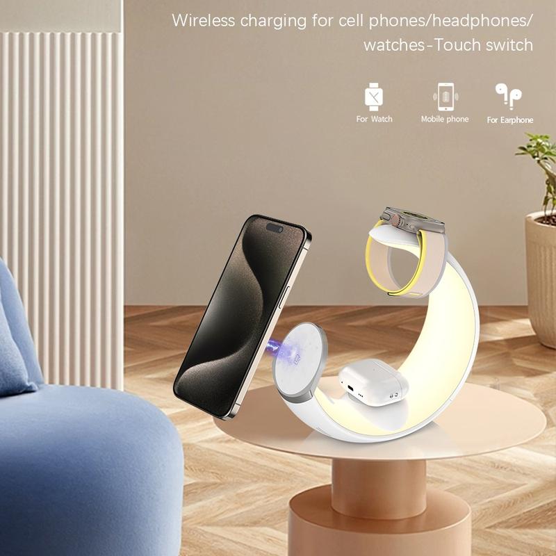 3-in-1 Magnetic Wireless Charger with Night Light for Smartphone, Smartwatch, Earphones - 15W