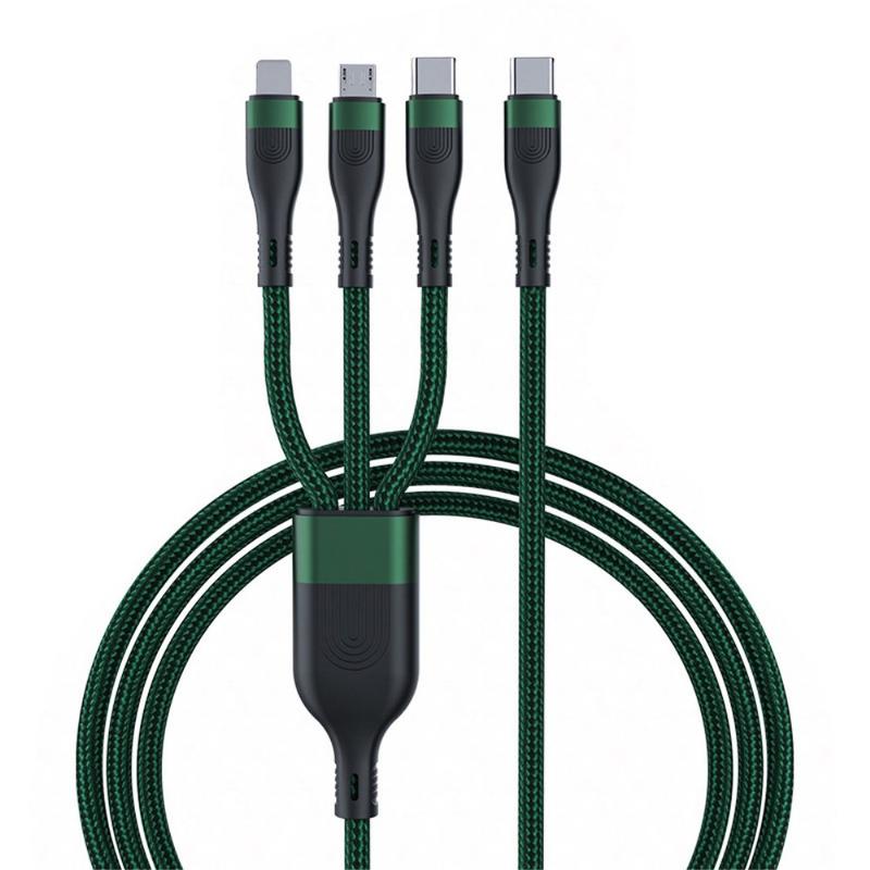 3-in-1 USB-C Charging Cable - Micro USB, USB-C and Lightning - 1.2m - Green / Black