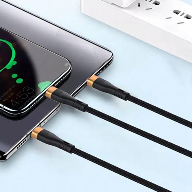 Streamline charging and syncing with a single, durable lead. This 3-in-1 cable has a USB-C (Type-C) input and three outputs—Lightning, USB-C and Micro USB—so you can power and transfer data across different devices without carrying multiple cables. The nylon-braided build is made to last, an integrated E-marker smart chip supports safer, more efficient charging, and the 1.2 m length gives comfortable reach at the desk, sofa or bedside.