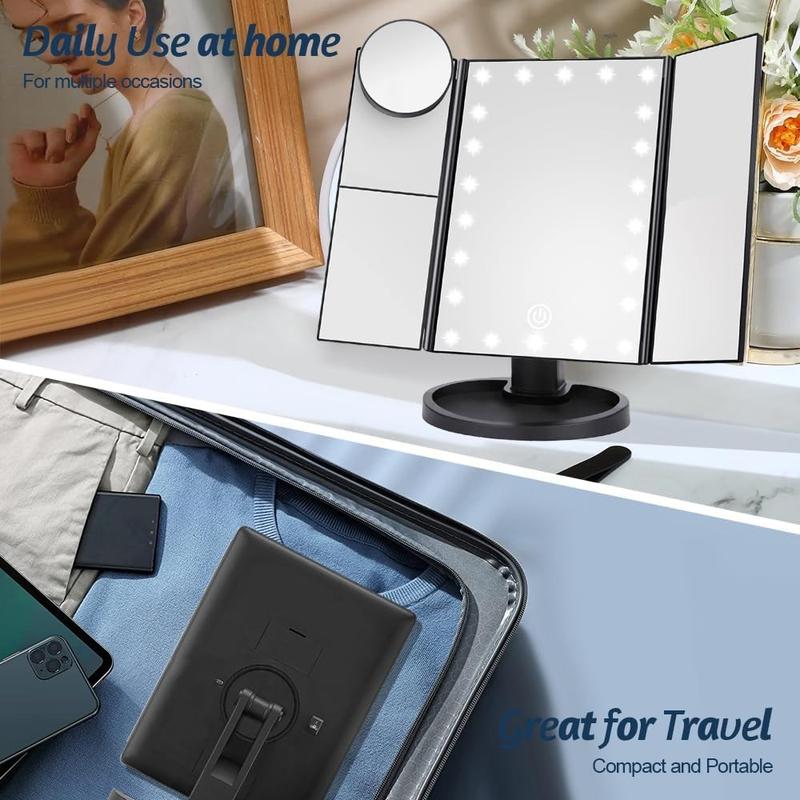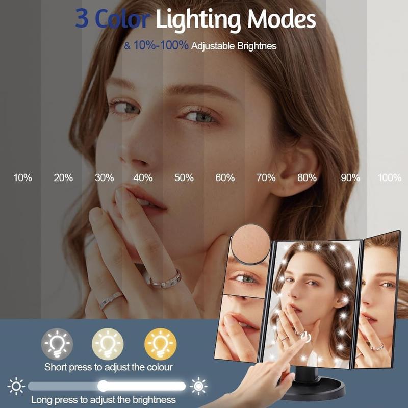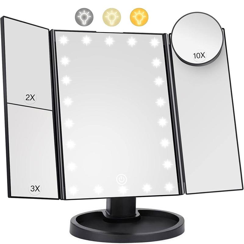 3-Side Foldable Makeup Mirror with 22 LED Lights - 1X/2X/3X/10X Magnifying Vanity Mirror