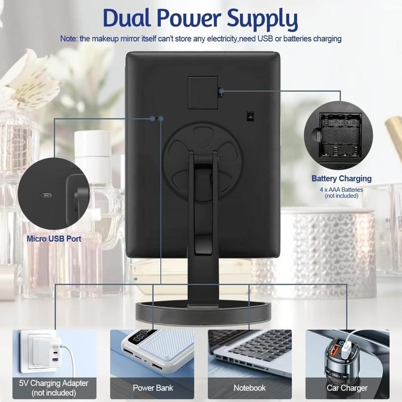 Illuminate your beauty routine with the 3-Side foldable LED makeup mirror, designed to deliver precision, brightness, and flexibility for flawless makeup application. With adjustable lighting and multiple magnification options, this stylish tabletop mirror helps you achieve salon-quality results right at home.