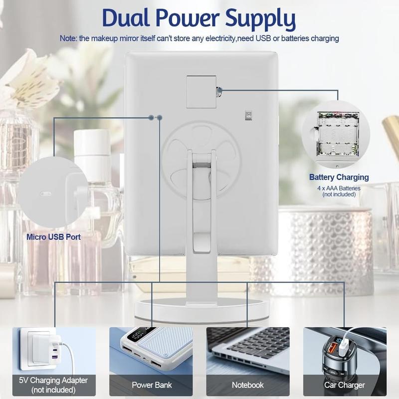 Illuminate your beauty routine with the 3-Side foldable LED makeup mirror, designed to deliver precision, brightness, and flexibility for flawless makeup application. With adjustable lighting and multiple magnification options, this stylish tabletop mirror helps you achieve salon-quality results right at home.