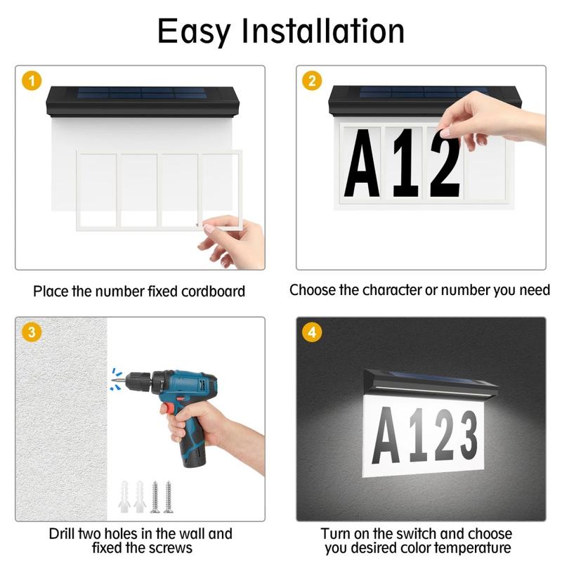 30-LED Solar Address Sign with Customizable House Numbers - LED Illuminated, Waterproof & Durable