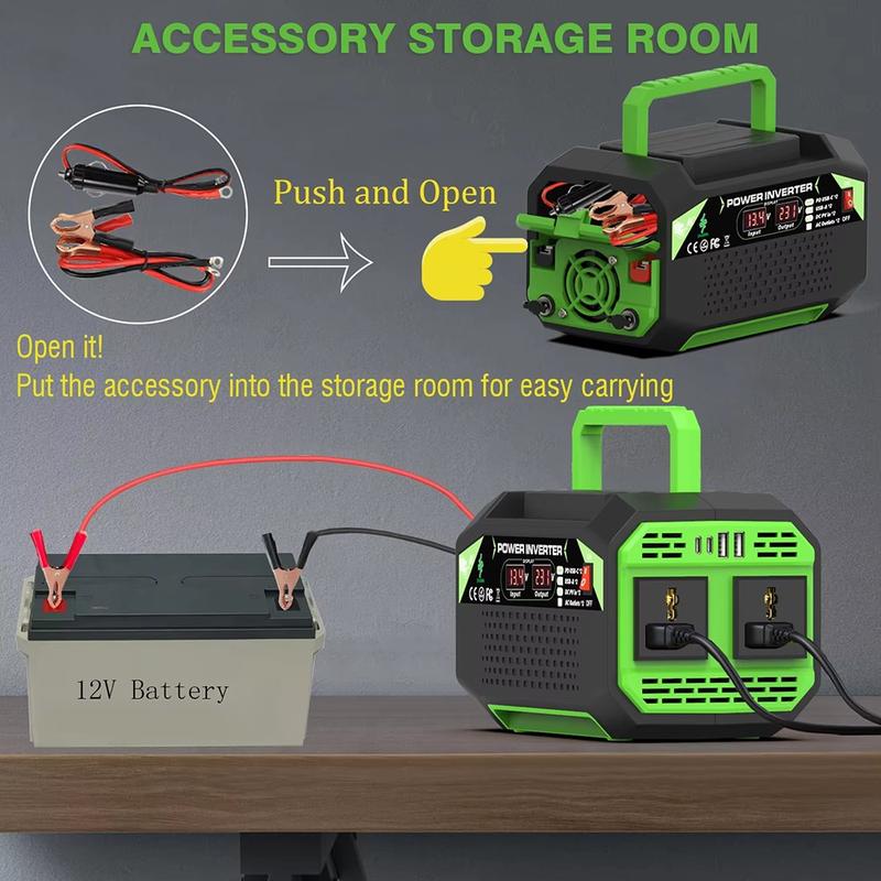 - Efficient DC to AC Conversion - Converts 12V DC power into 220V AC with a continuous output of 300W and peak power up to 600W, ideal for laptops, tablets, CPAP machines, cameras, and other portable devices.
