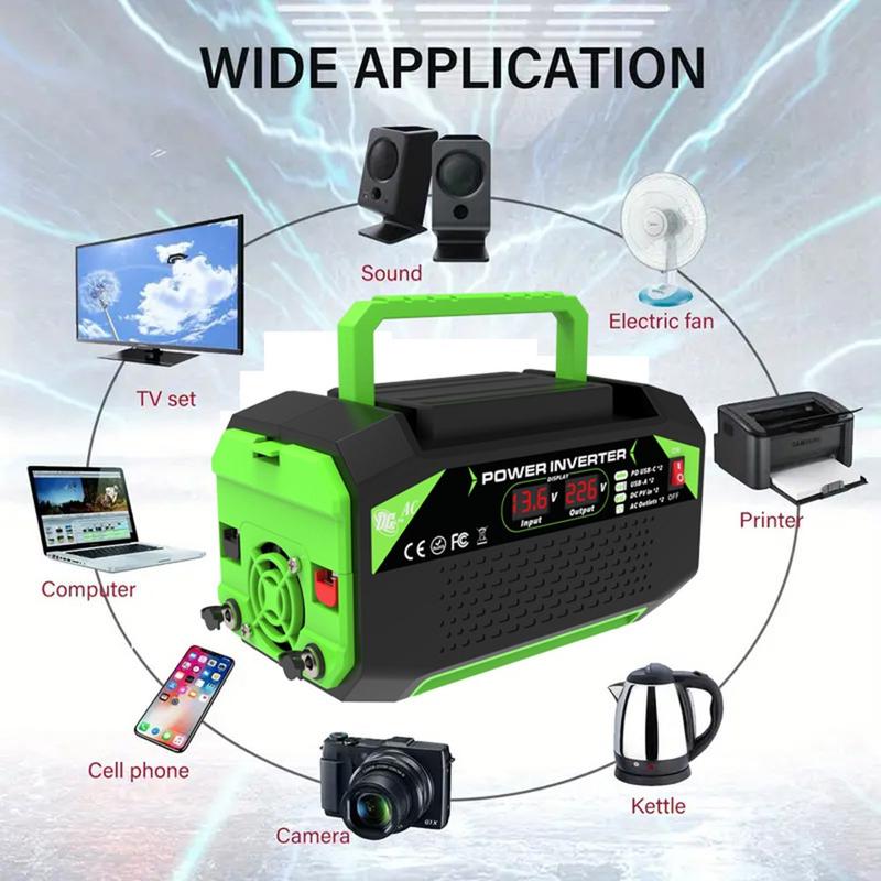 Perfect for camping, road trips, off-grid setups, emergency power backup, and RV use. Safely powers phones, laptops, cameras, fans, and small electronics while traveling.