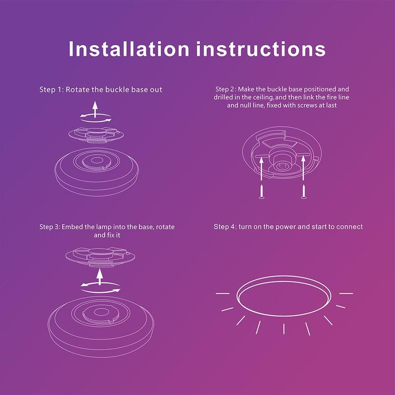 Enjoy dynamic lighting effects, music sync, and 24 built-in scene modes that can be customized to your preferences. With smart scheduling, sunrise/sunset automation, and DIY lighting plans, this ceiling light adds both practicality and ambiance to your living room, bedroom, dining area, or office. Built with high-efficiency 30W LEDs and a lifespan of 20000 hours, it’s a modern centerpiece designed for both performance and elegance.