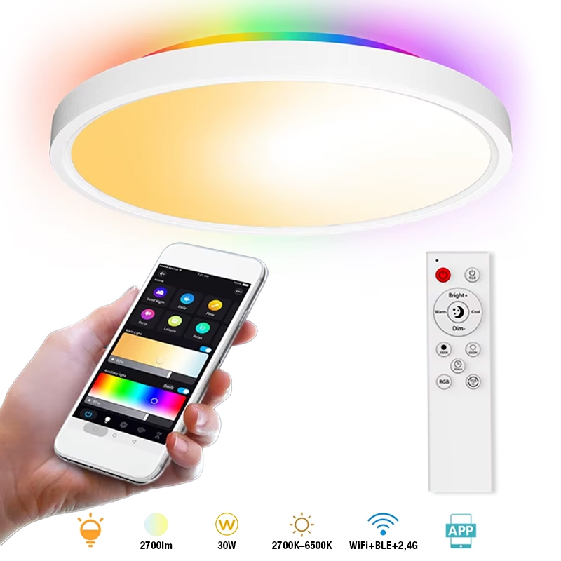 High-Quality Smart Ceiling Light: This 30W smart ceiling light offers both WiFi and Bluetooth connectivity, along with a 2.4G remote control for independent management