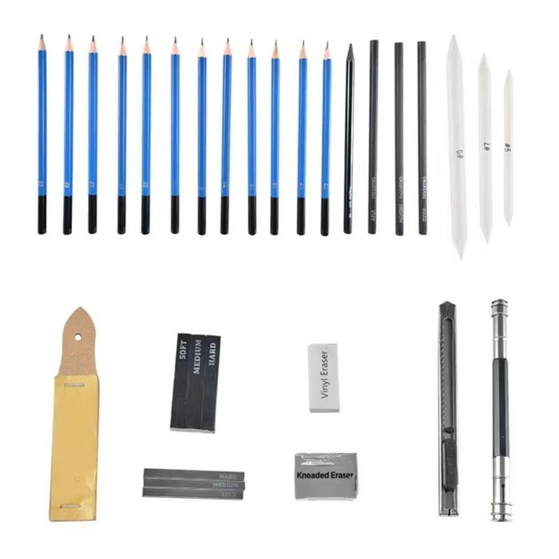 This 35-piece sketching set offers a balanced combination of quality, variety, and portability. It's tailored to meet the needs of artists at any stage, providing the essential tools required for a wide range of drawing techniques. The inclusion of a sketchbook and carrying case ensures that you're always ready to capture inspiration, whether at home or on the go.