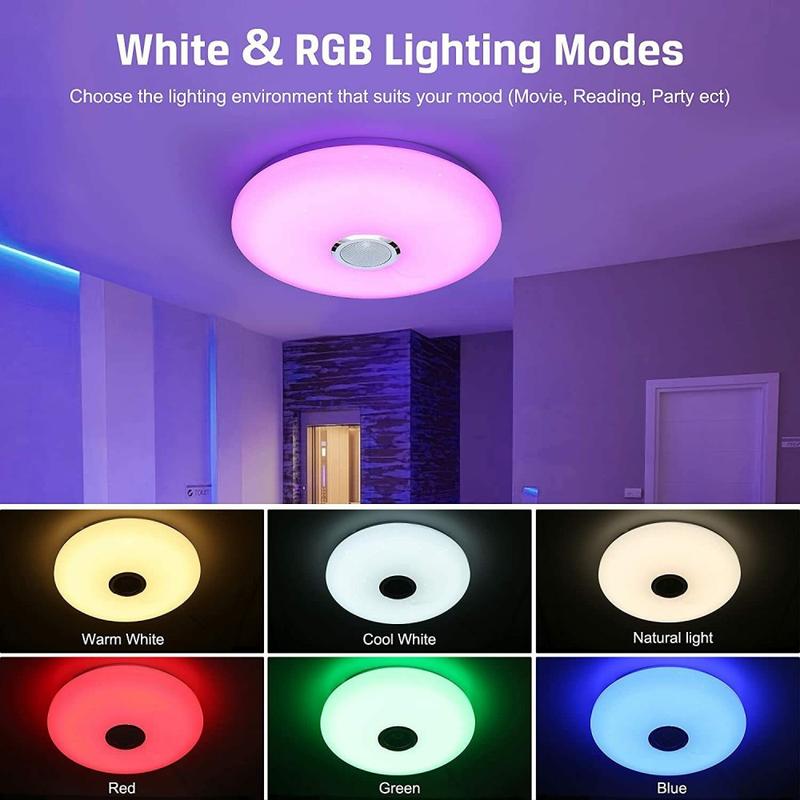Smart Music Ceiling Light – 36W RGB LED Color-Changing Lamp with Bluetooth Speaker, Remote Control and Starry Sky Effect