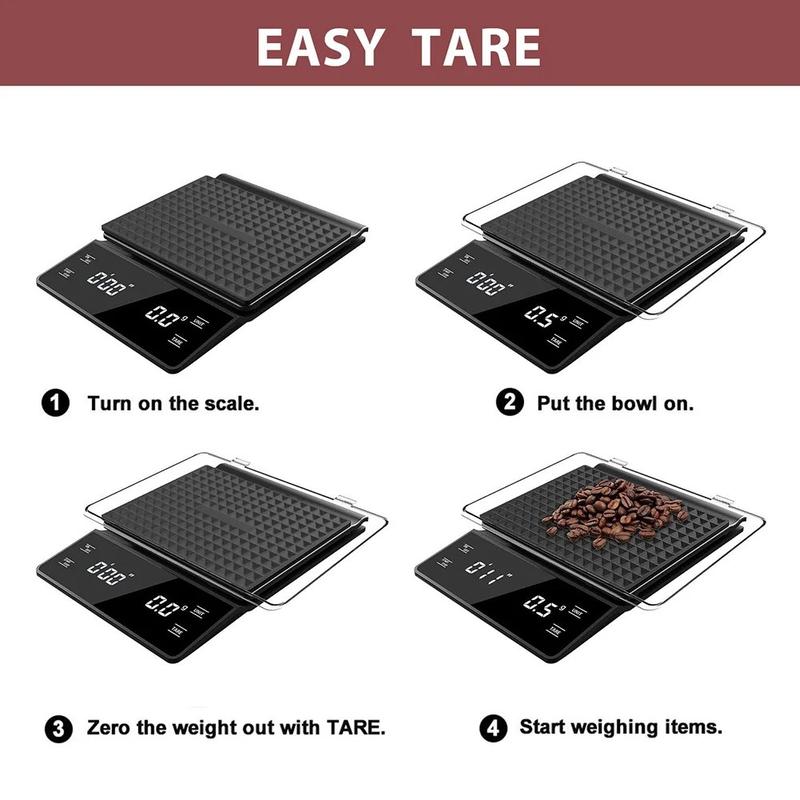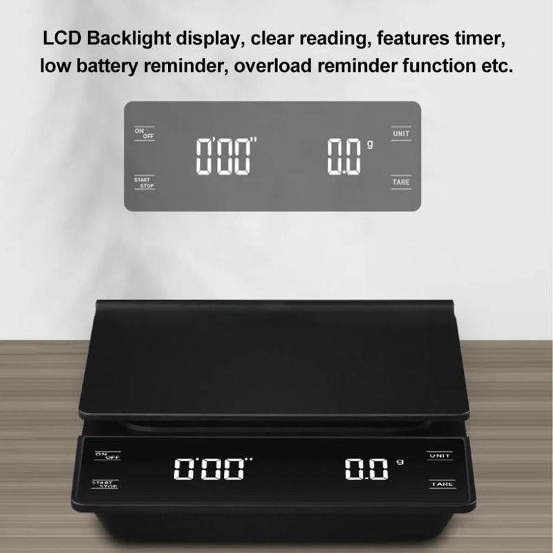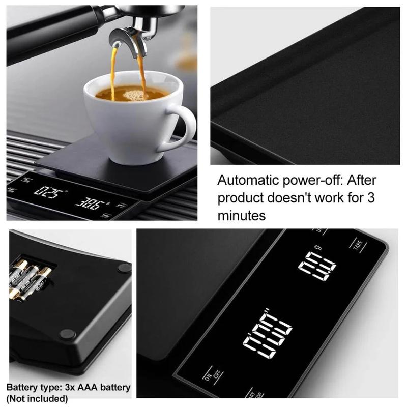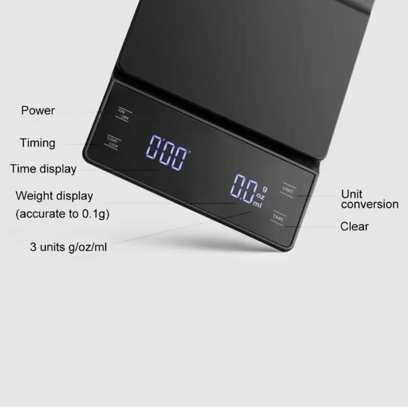3KG Digital LED Display Coffee Scale with Timer High Precision Kitchen Scale (Battery Style, Battery Not Included) - Black