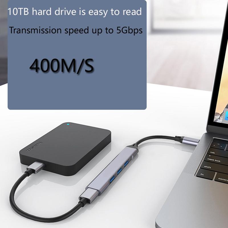 4-in-1 USB-C Hub with 1x USB 3.0 + 3x USB 2.0 - Instant Port Upgrade for Laptops, Tablets & Phones