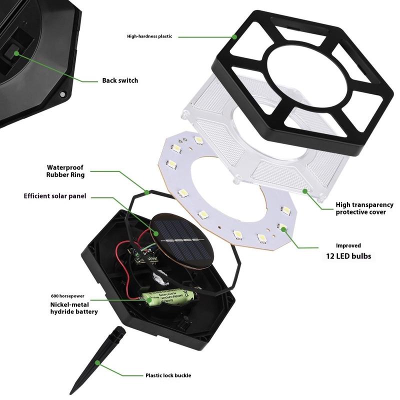 - Energy-saving solar design – 2 V / 80 mA polycrystalline silicon panel harvests daylight for zero running costs.