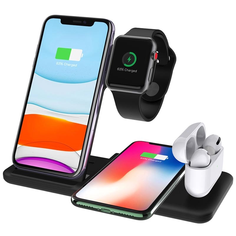 - 4-u-1 stanica za punjenje Q20 za pametne telefone, slušalice i pametne satove