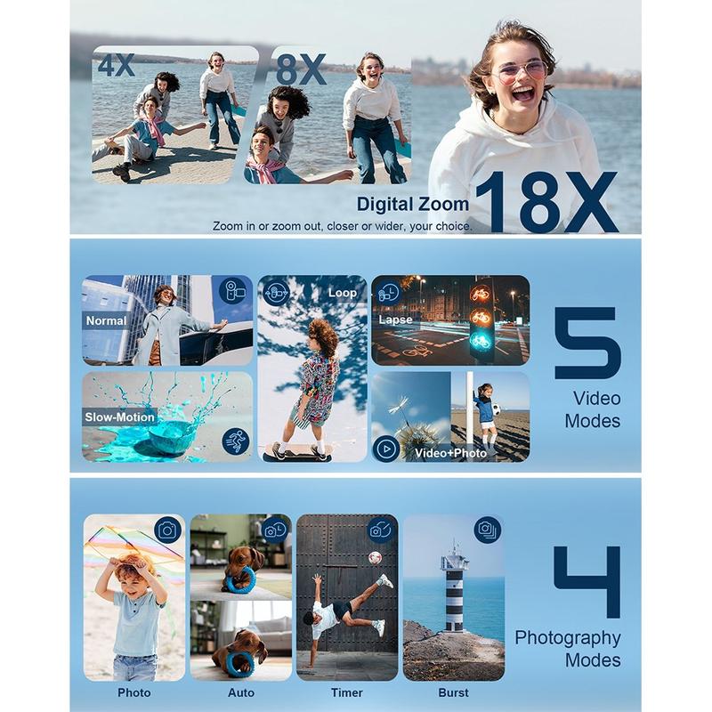 - 4K Ultra HD Video & 80MP Photography - Record crystal-clear 4K videos at 30FPS and capture 80MP photos with stunning detail. The 18X digital zoom allows you to get closer to the action without sacrificing quality.