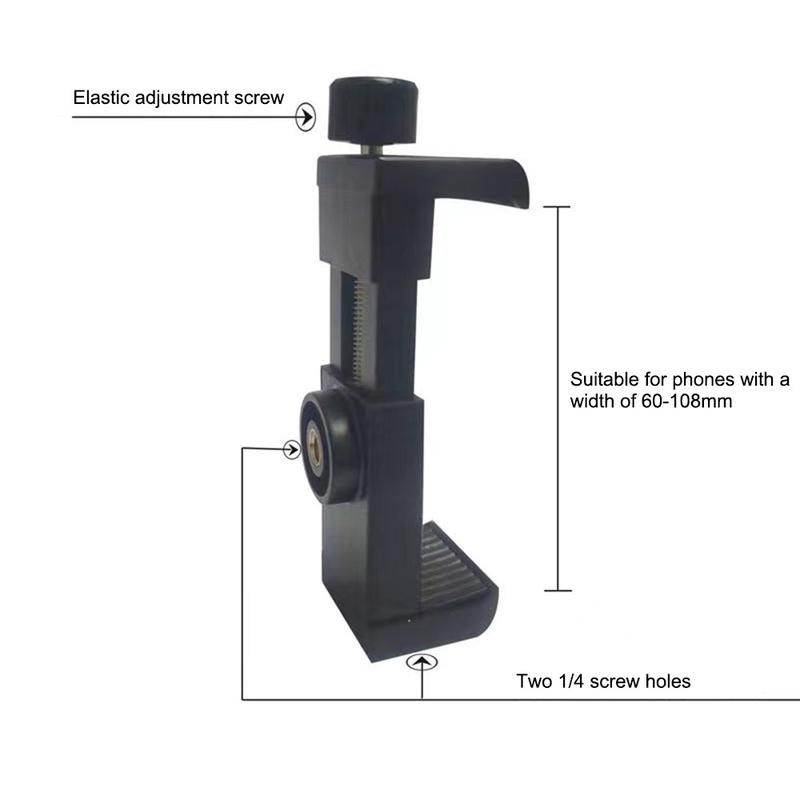 The phone clip includes an anti-slip silicone pad to keep your phone stable. It supports 60-100 mm width devices and allows both horizontal and vertical shooting for more creative content. A universal 1/4" screw interface on the bottom and back makes it compatible with many tripods and mounts.