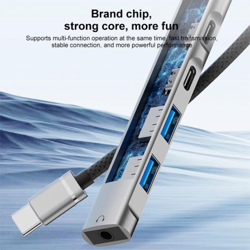 - Versatile 5-in-1 Design: Consolidates Type-C charging, Type-C data, 2 × USB 2.0, and a 3.5 mm headphone jack in one convenient station.