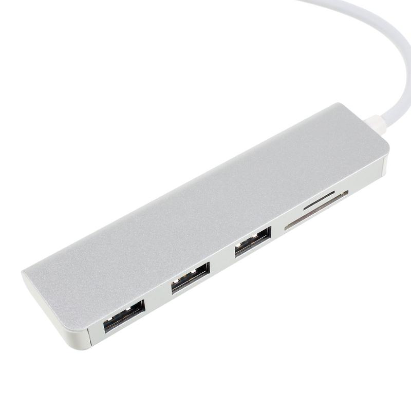 - 5-in-1 expansion: Type-C to SD card slot, TF (microSD) card slot, and 3× USB 3.0 ports