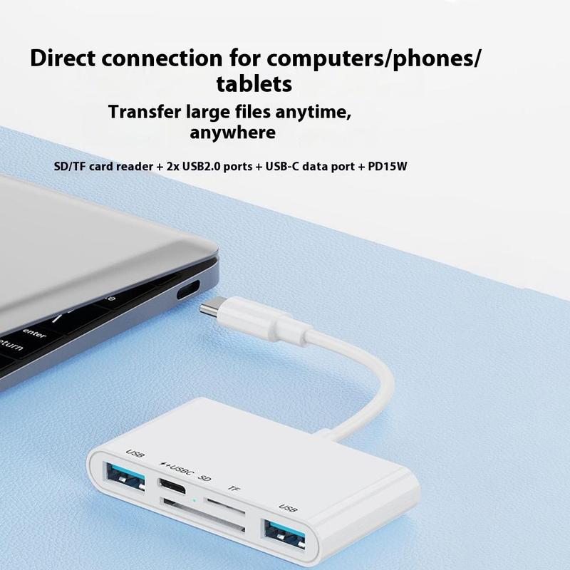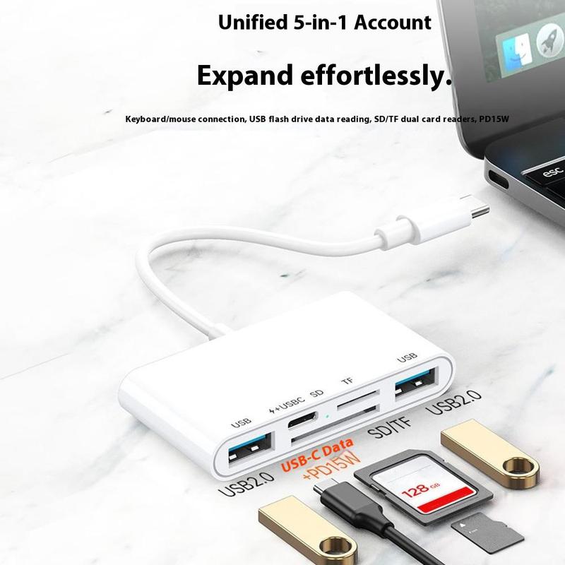 5-in-1 USB-C OTG Adapter - USB-C Hub with Dual USB 2.0, 15W PD Charging, and SD/TF Card Reader for iPhone, MacBook and USB-C Devices
