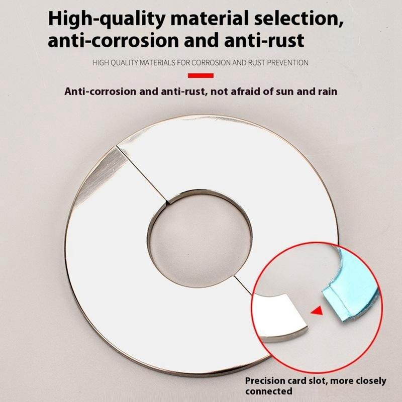 Conceal unsightly wall openings around pipes and faucets with these stainless steel round flange covers. Designed for quick, tool-free installation, the strong self-adhesive backing attaches directly over the hole to create a clean, polished look. Made from durable, rust-proof stainless steel, these covers resist high temperatures, maintain their shape, and offer long-lasting performance in kitchens, bathrooms, and utility areas.