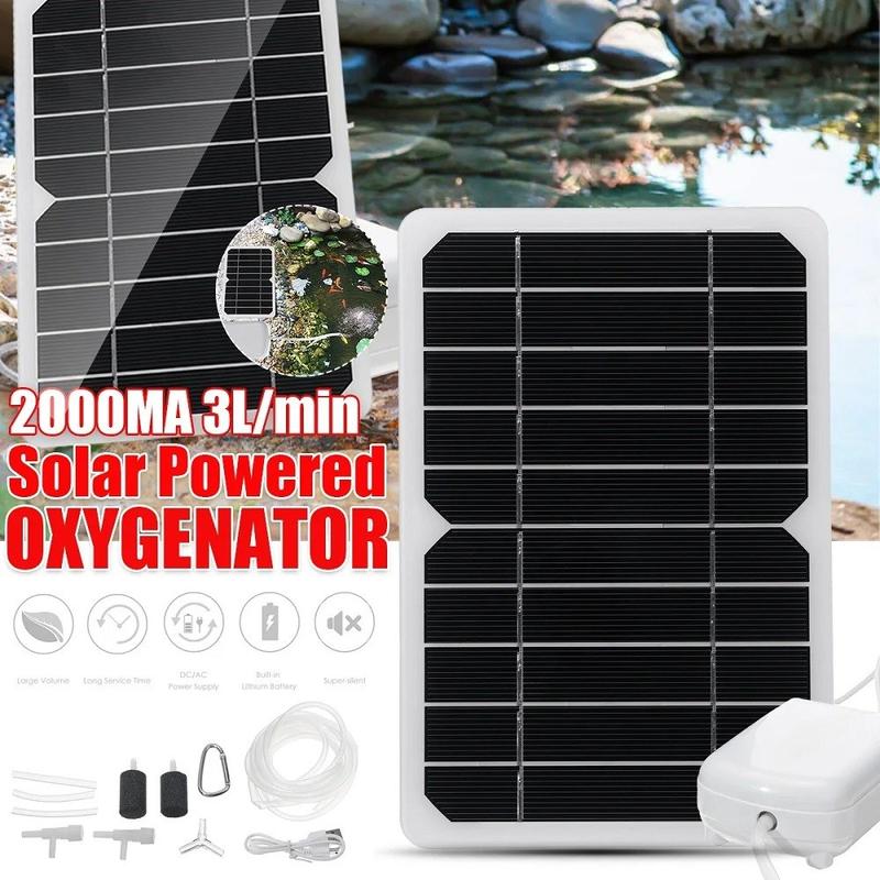 5W Solar Powered Panel with Oxygenator Pump / Outdoor Fishing and Aquarium Aeration Kit - 3L/min, Battery Backup