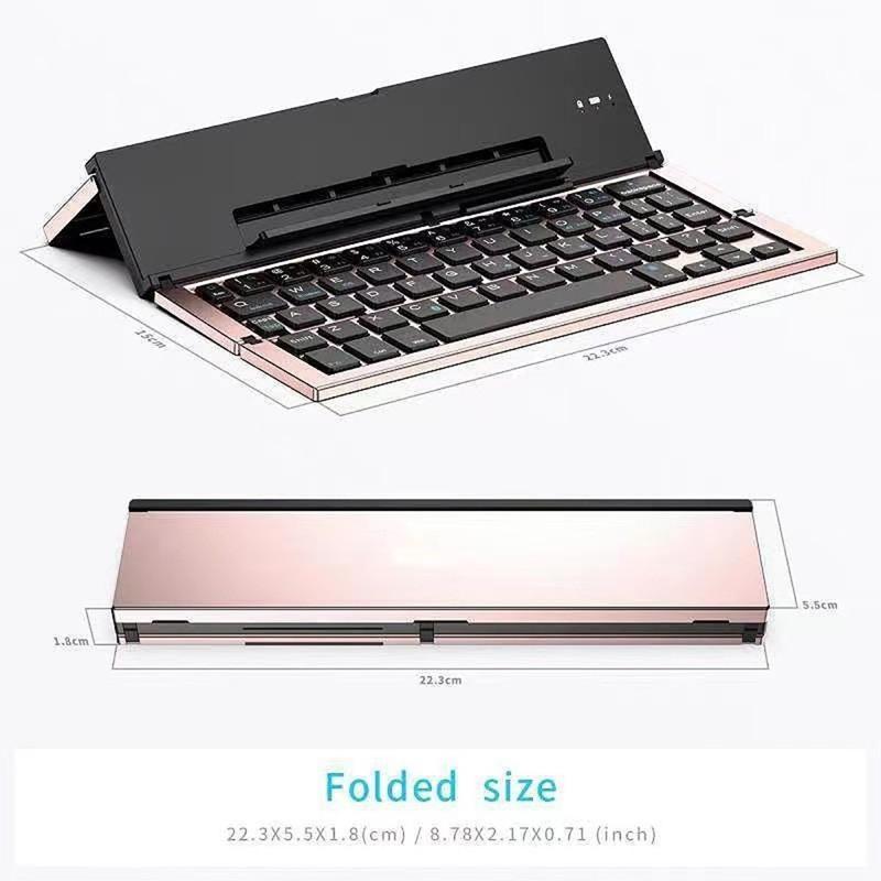 608 Tri-Fold Wireless Keyboard with Dual Channel Switching and Stand - Aluminum Alloy