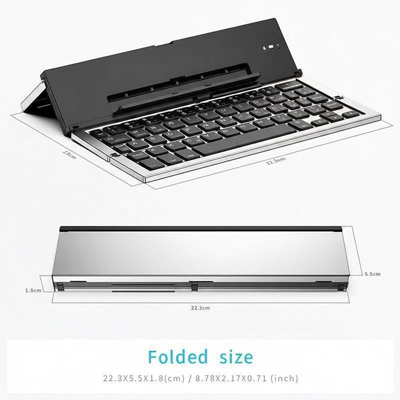 608 Tri-Fold Wireless Keyboard with Dual Channel Switching and Stand - Aluminum Alloy