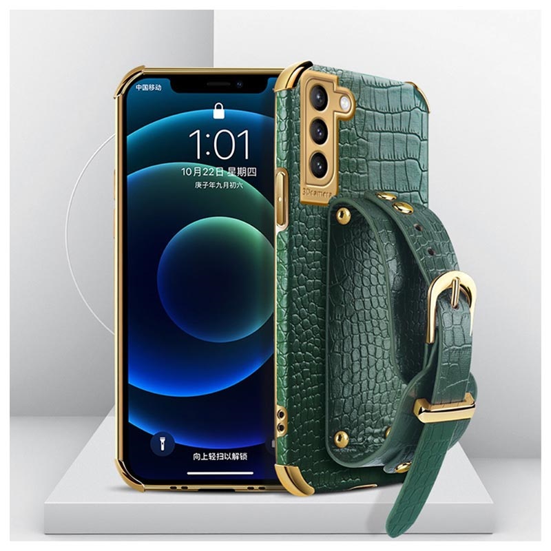 - 6D Crocodile hybrid case with hand strap for Samsung Galaxy S21 5G