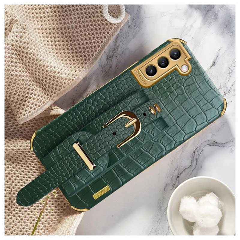 Dress up your Samsung Galaxy S21 5G with this modern remarkable 6D Crocodile hybrid case. This case is here to protect your beloved Samsung Galaxy S21 5G and give it a luxurious look. Its crocodile texture with gold details will make your Samsung Galaxy S21 5G always noticed. This hybrid case has a hand strap that provides you to carry your Samsung Galaxy S21 5G on your hand, like a bracelet. It will be the perfect solution when your hands are busy. This belt allows you to carry your things much easier while wearing your Samsung Galaxy S21 5G on your wrist. The hand strap can also be used as a stand for watching videos.