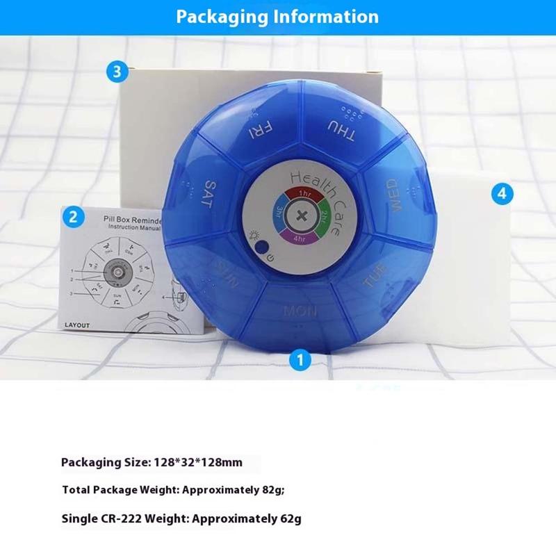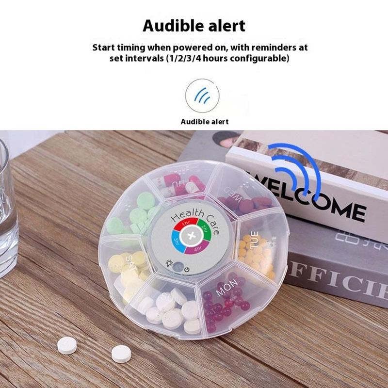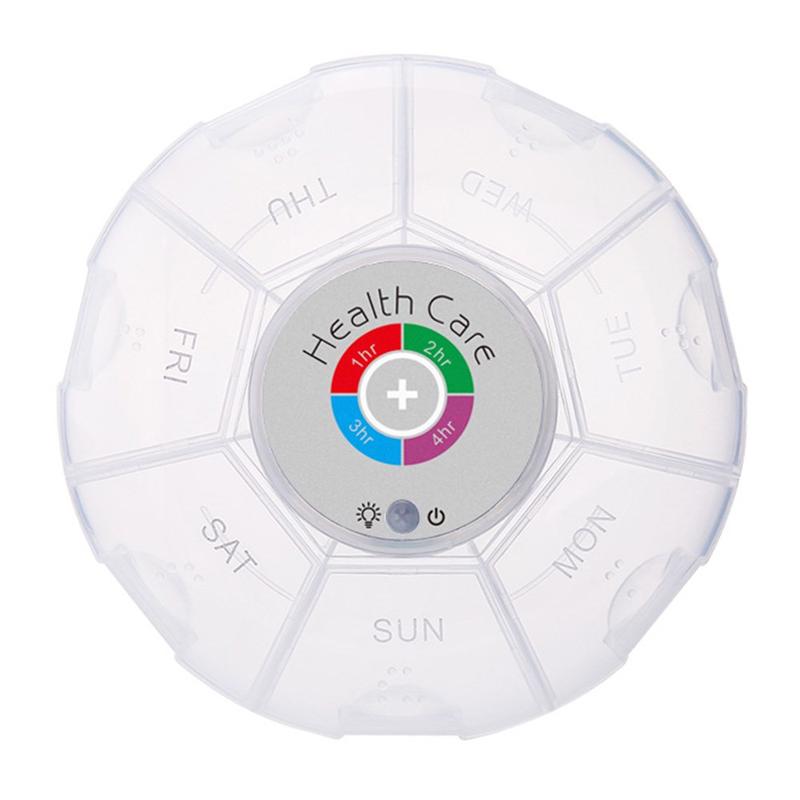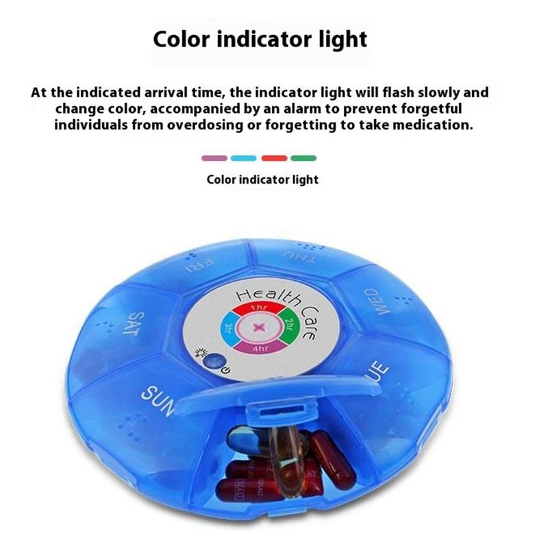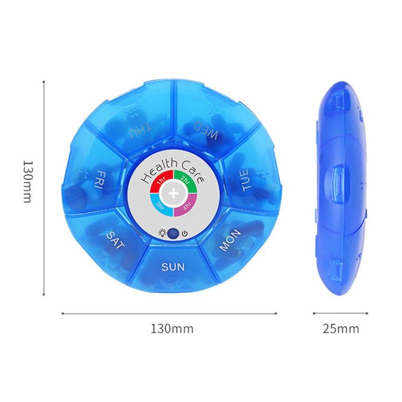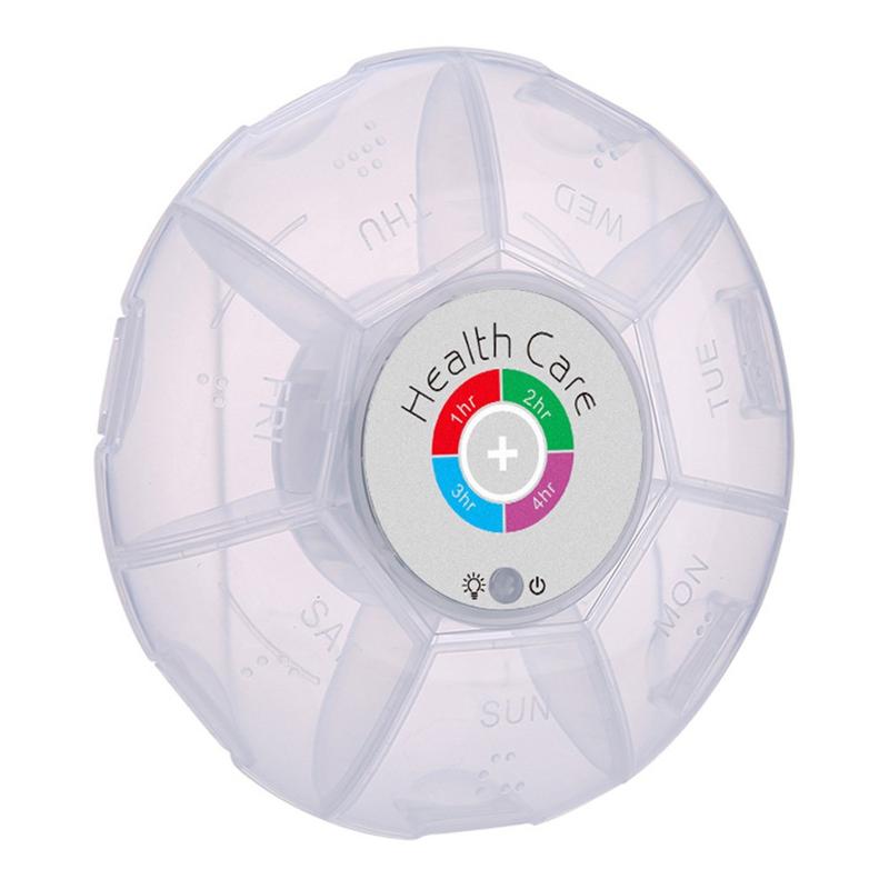 Stay on top of every dose—even when you’re travelling. This circular, seven-compartment pill box pairs colour-changing LEDs with audible alerts, letting you programme up to five reminders at 1-, 2-, 3- or 4-hour intervals. Braille bumps and raised weekday icons keep the layout inclusive, while a moisture-proof, impact-resistant shell protects tablets in a handbag or carry-on.