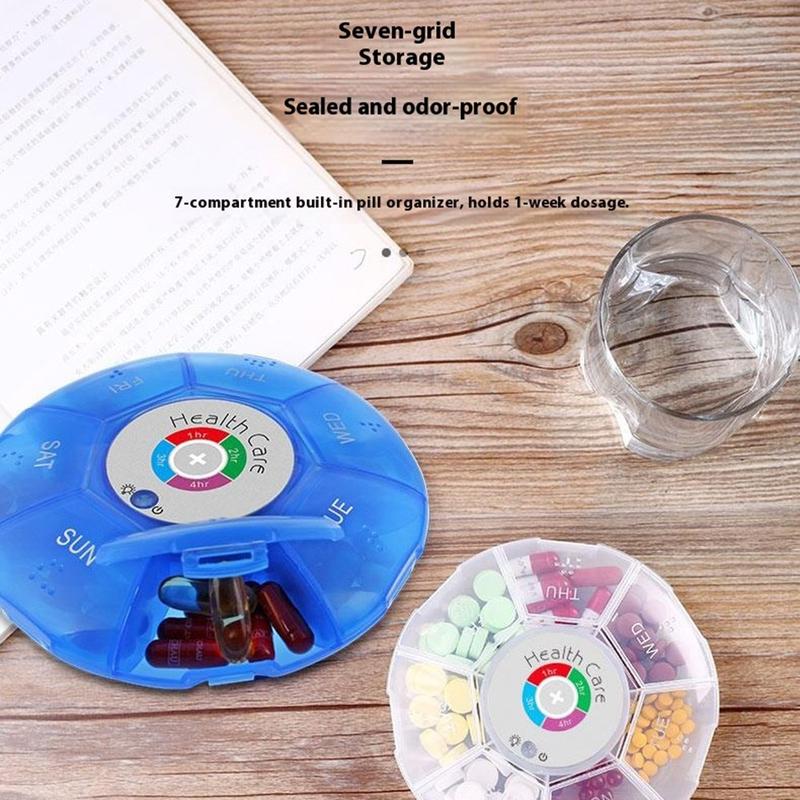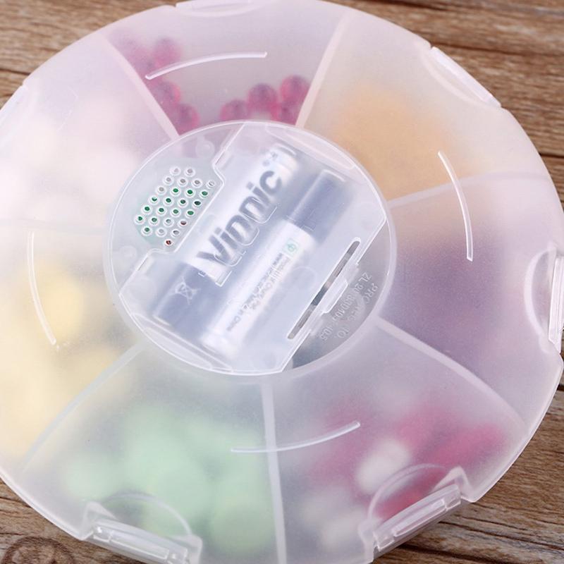 - 7 sealed compartments - one click rotates to the next dose; interior lids keep different tablets fresh and separate.